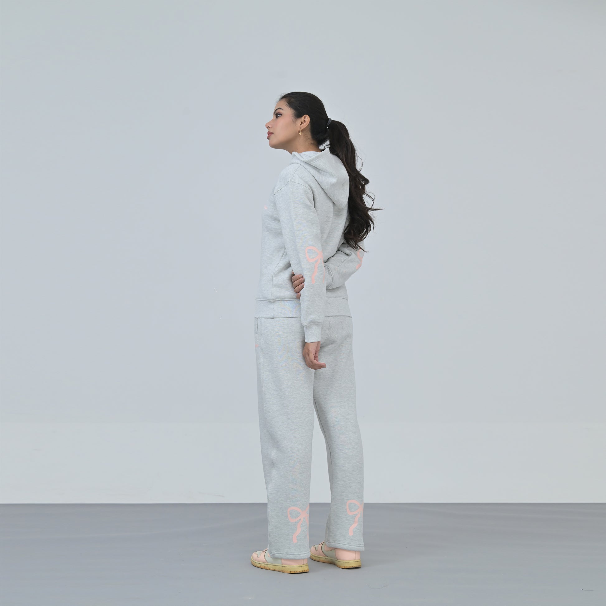 Crafted from premium 100% Supima® Cotton Fleece, this Coord Set is for the one who loves playful additions to her outfits! The bow designs elevate your basic hoodie set while giving that comfort chic look. Perfect for a stylish airport, coffee-run or a lounging look.
