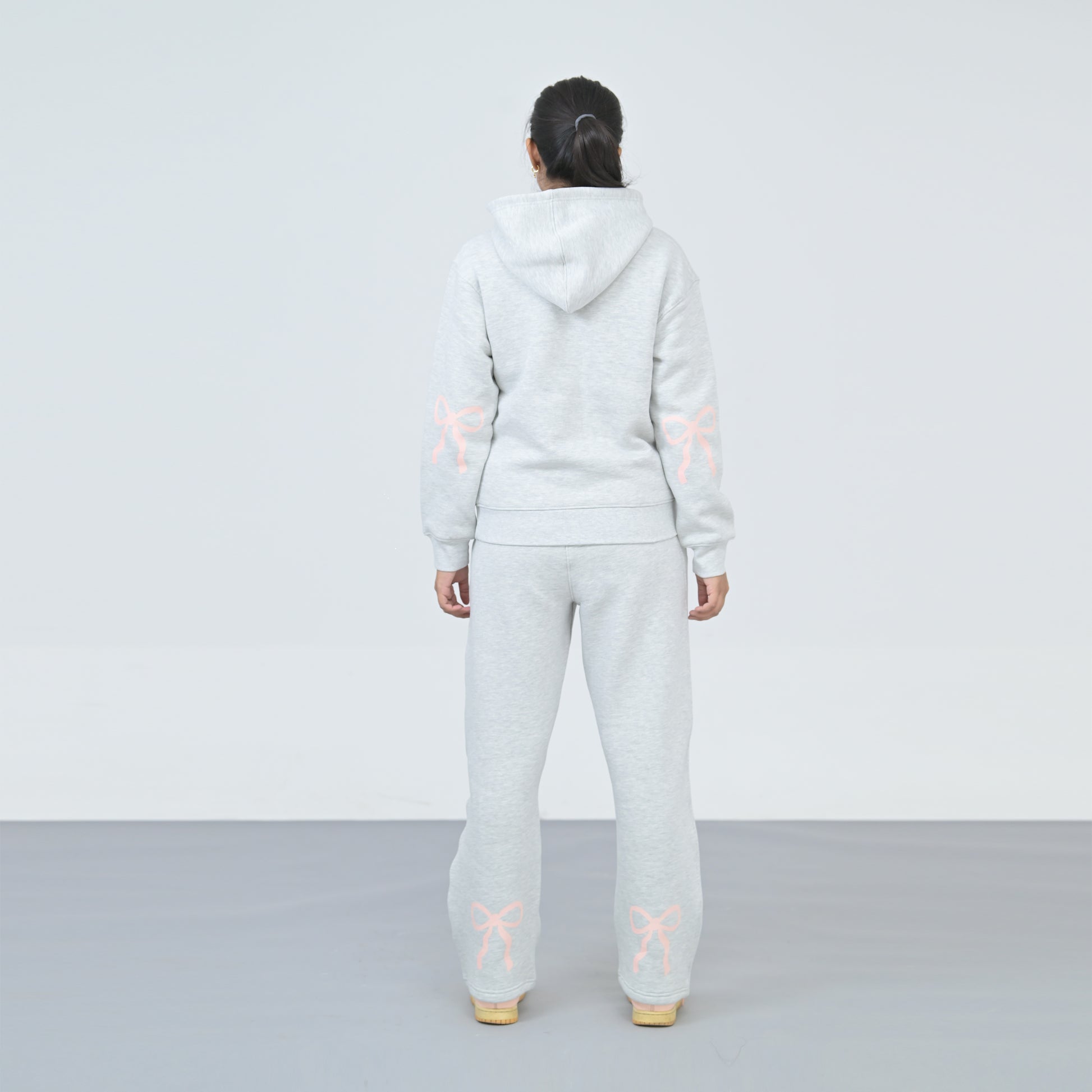 Crafted from premium 100% Supima® Cotton Fleece, this Coord Set is for the one who loves playful additions to her outfits! The bow designs elevate your basic hoodie set while giving that comfort chic look. Perfect for a stylish airport, coffee-run or a lounging look.