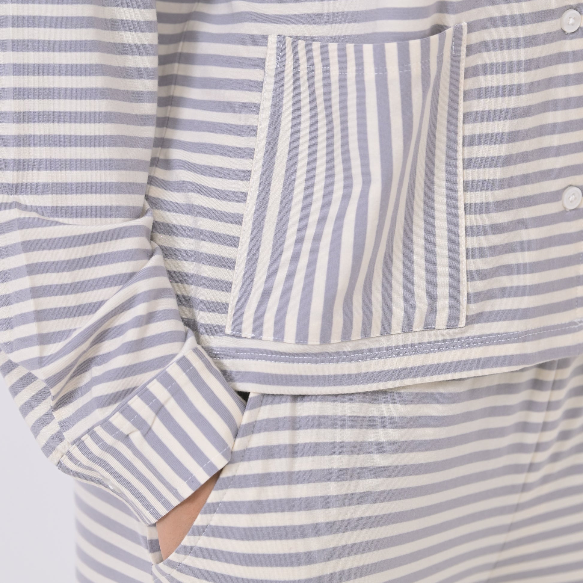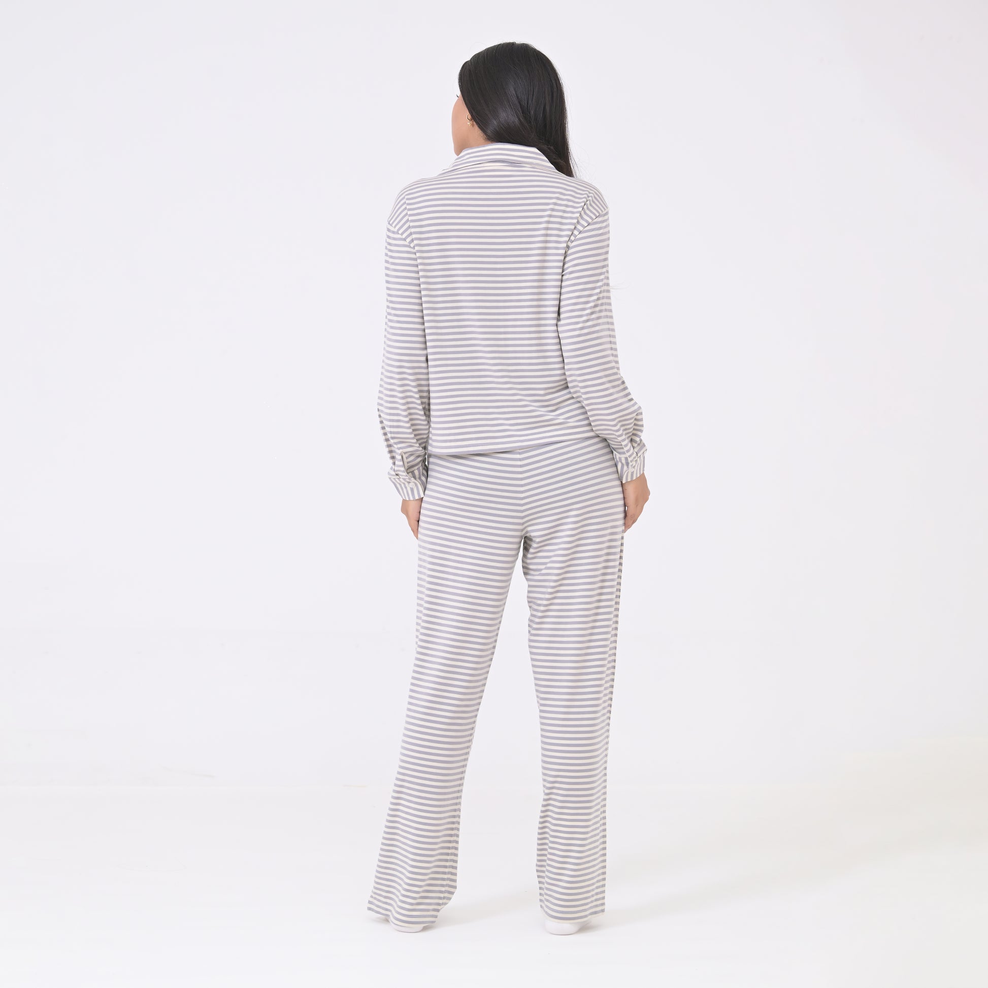 Fall into comfort with our super relaxed, modern and irresistibly soft Striped Pajama Set. Features a body-cut top with a pocket to store and high waisted pajamas. It’s breathable, cozy and ideal for those snuggly, comfy nights.